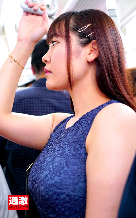 電車で夏服薄着の巨乳乳首を痴漢画像8