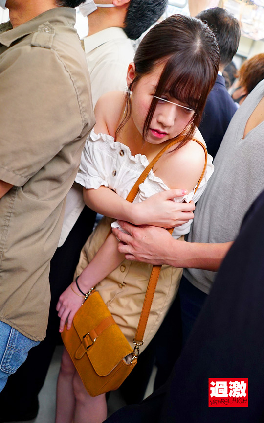 電車で夏服薄着の巨乳乳首を痴漢画像2